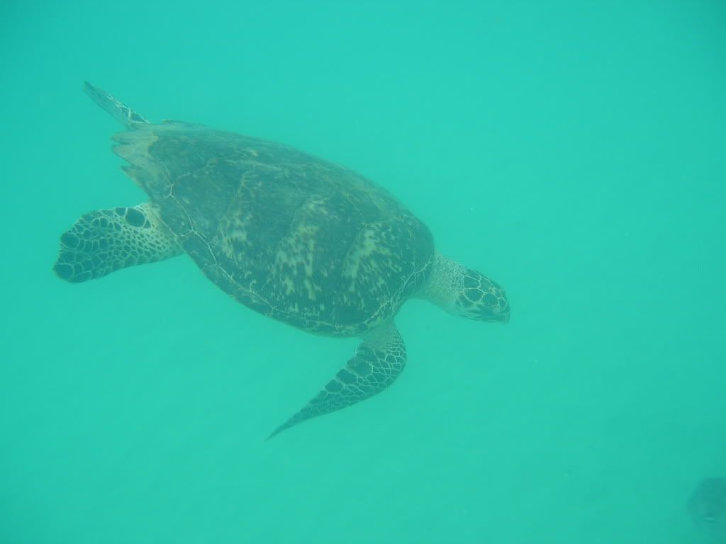 While we were in Barbados we chose to go on one snorkeling trip. The water there is a little rough and never very clear, so spending money on several excursions there isn't really worth it. We chose one that we got to swim with the turtles, observe the shipwrecks, and chill on the beach with the softest sand you'll ever come across. The last time we went to Barbados we went on a similar trip and had a hell of a time. This time I was armed with my Olympus D-560 in an underwater case and was ready for what we may see.