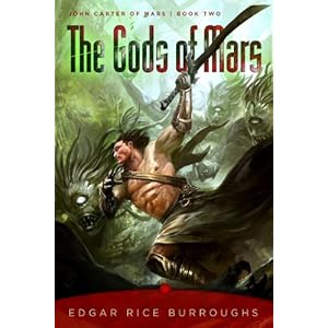 Book two of the Barsoom Series (aka The John Carter of Mars series) by Edgar Rice Burroughs is THE GODS OF MARS. It picks up where the first book left off, Carter is transported back to Mars from New York after well over a decade of trying to find his way back. This time he's dropped off in a part of the planet he doesn't recognize with even stranger looking creatures abound. The book gets right into the thick of it. Thark leader Tars Tarkas and a group of pilgrims have decided to take their final journey down the Iss so they may be embraced by the Goddess Issus. They happen to be near where John Carter has appeared on the Red Planet and the pilgrims are attacked and slaughtered, but the fierce Tarkas, by the strange creatures that Carter saw upon arrival. From that point on it's a nonstop action ride of fighting for their lives. Along their way they find another beautiful Red Martian Princess named Thuvia, who is a prisoner of the cruel Holy Therns. Of course, she falls in love with him.