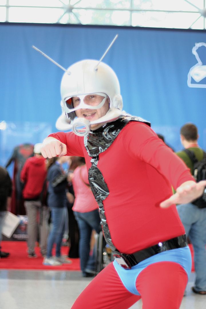There was a news crew by DC's Superman exhibit interviewing a man dressed as a very convincing Captain America. I saw this guy chillin' nearby in case they needed to interview him...