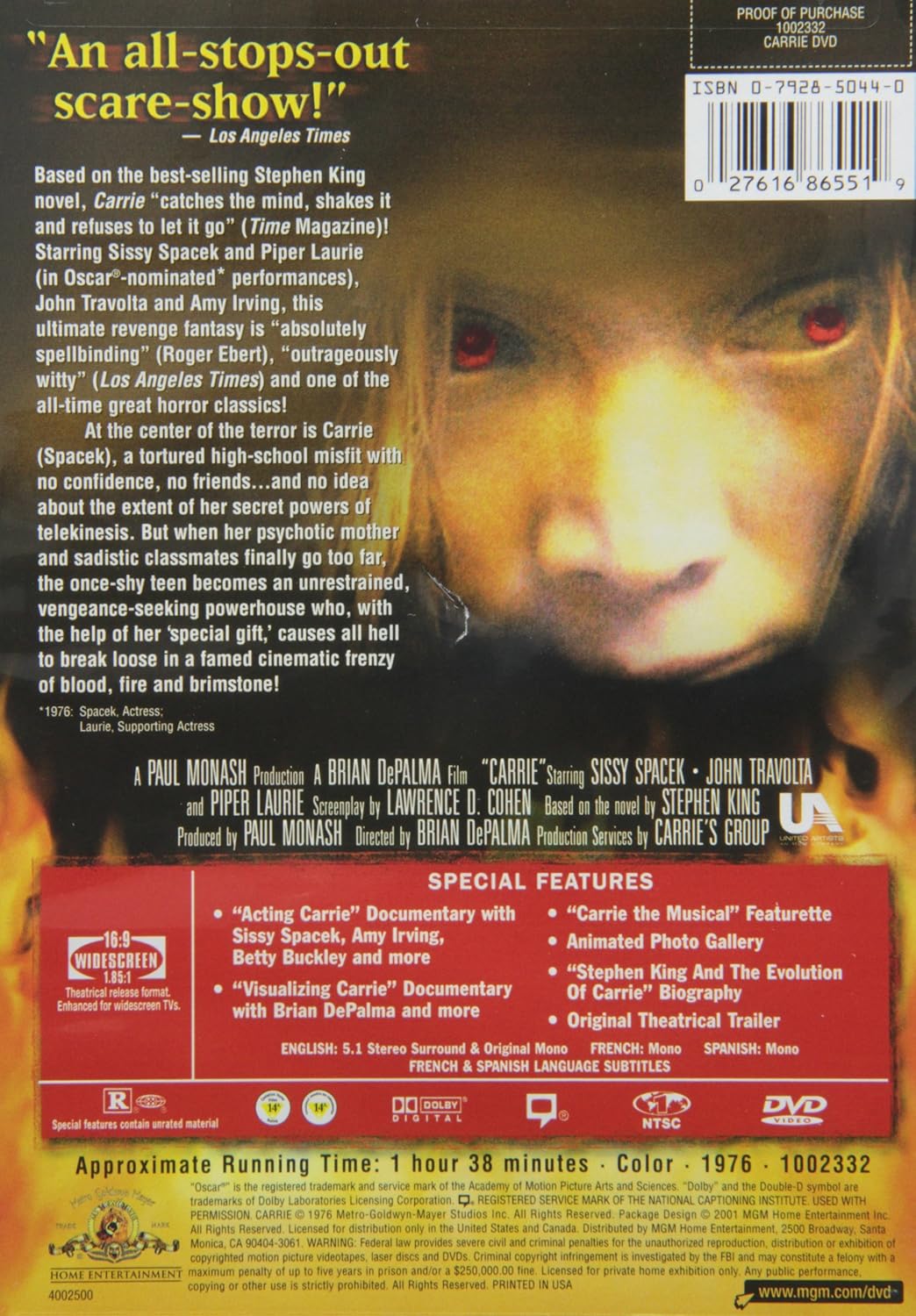 Carrie White, a strange high school girl, is laughed at for the last time when she unleashes her darkest secret on her class at the prom.