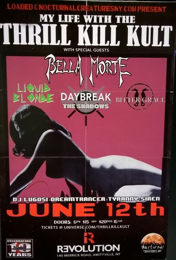 The performance was about 1.25 hours. The band sounded great and they had a good time performing which goes a long way in my book. We had a great time and would highly recommend seeing THRILL KILL KULT if you were considering seeing the band who performed during the big gun fight scene during THE CROW.