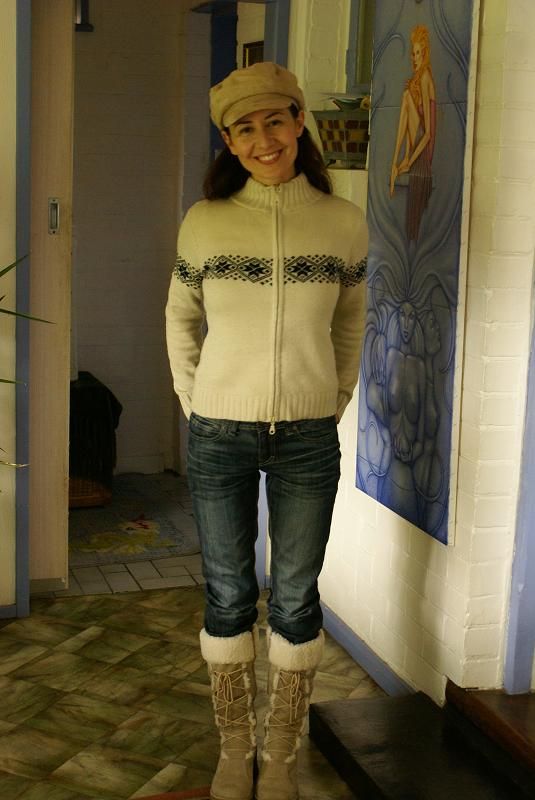 - The artist, Conny Valentina, dressed for the Aussie winter.